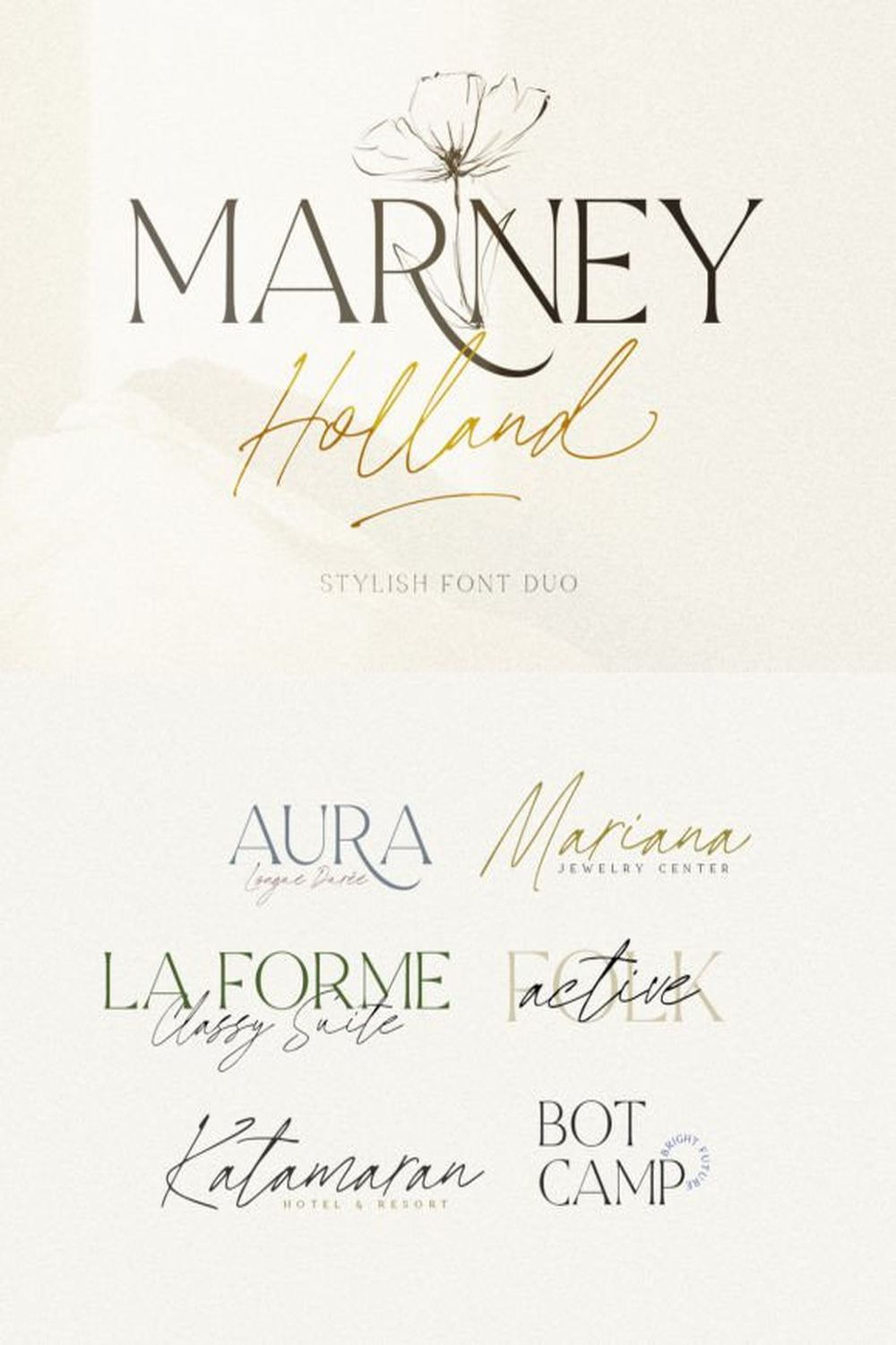 The font’s overall personality is bold and playful, yet retains a sophisticated edge, making it suitable for brands targeting a younger demographic interested in fashion, music, or pop culture with a vintage twist.